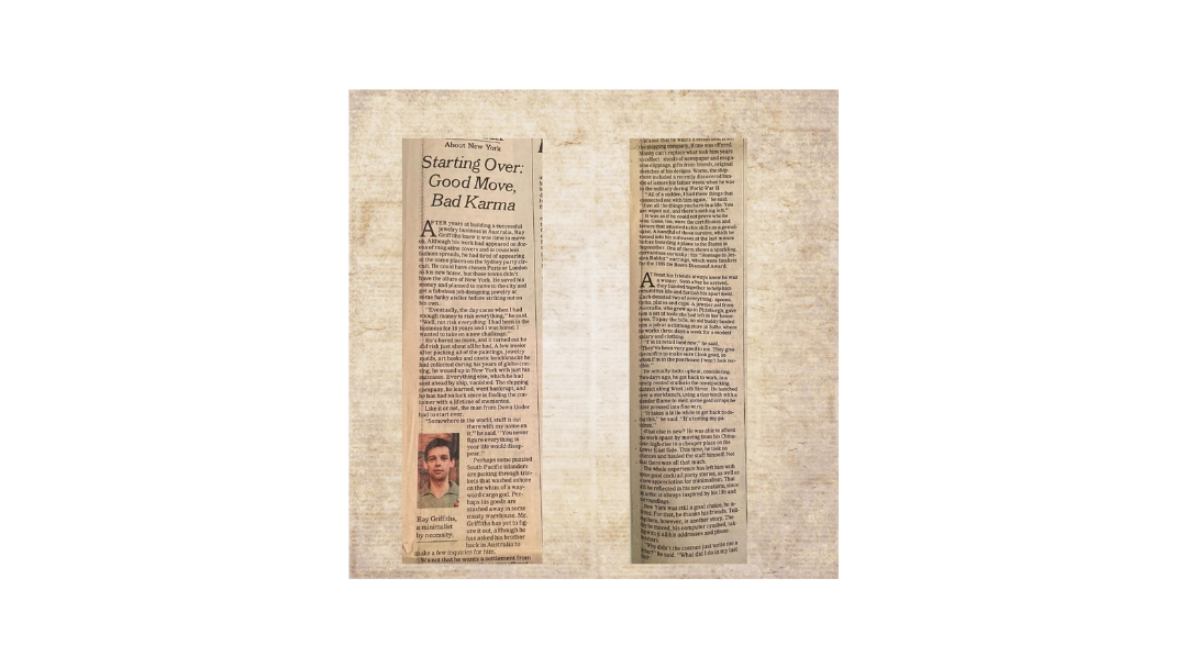 AFTER years at building a successful jewelry business in Australia, Ray Griffiths knew it was time to move on. Although his work had appeared on dozens of magazine covers and in countless fashion spreads, he had tired of appearing at the same places on the Sydney party circuit. He could have chosen Paris or London as his new home, but those towns didn't have the allure of New York. He saved his money and planned to move to the city and get a fabulous job designing jewelry at some funky atelier before striking out on his own.