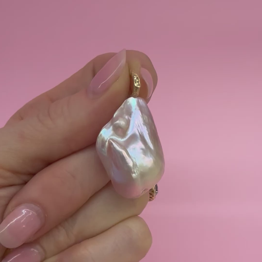 Pink Freshwater Pearl Earrings with Pink Sapphire Clover Tops