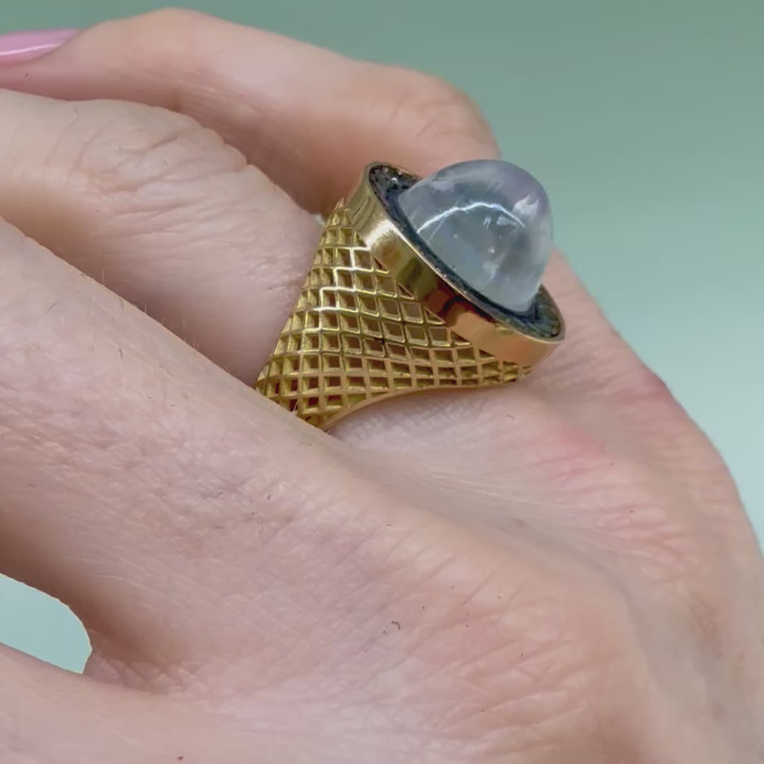 Madagascan Orange Sapphire and Black Opal Regency Ring
