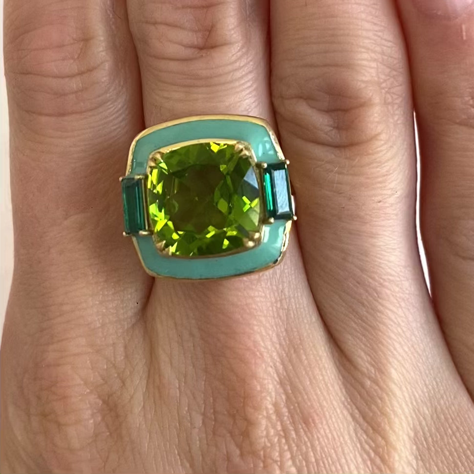 Peridot and Emerald Enamel Ring Sale price$8,745.00