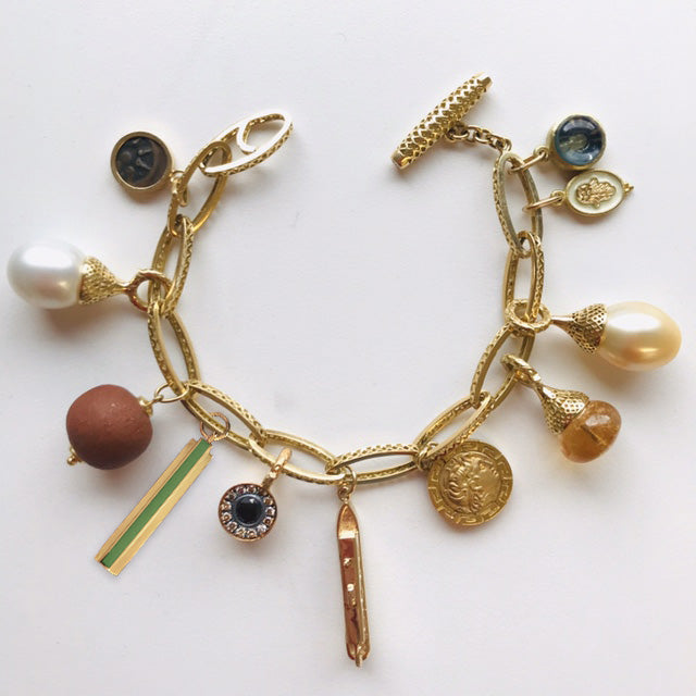This client started off with our 18k Yellow Gold Elongated crownwork® bracelet and worked with Ray to build out her perfect charm bracelet.