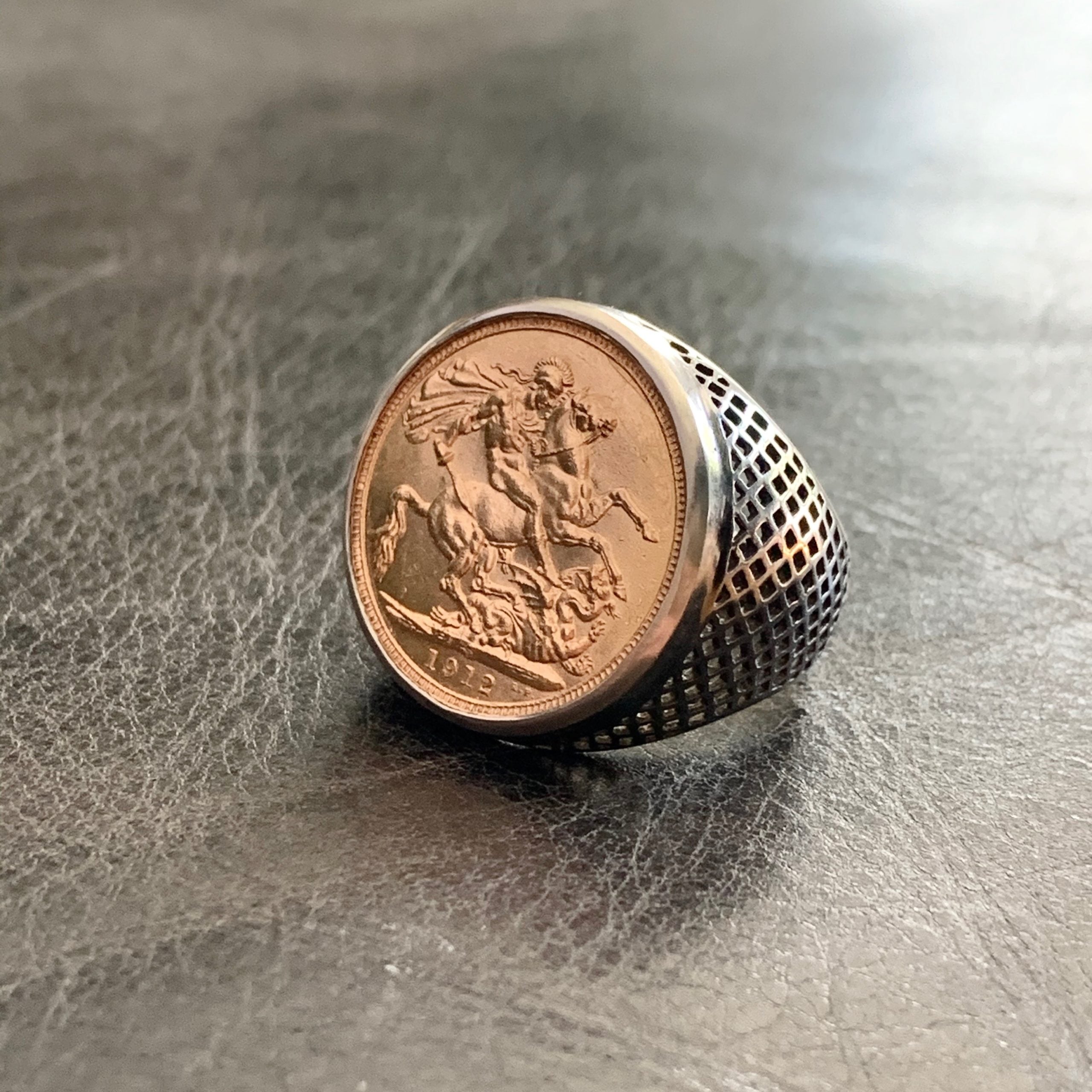 The client for this restoration is a fellow Aussie, he is also a very talented and celebrated photographer (he shot our last campaign). So he has an eye for detail. He had a family heirloom coin that he wanted to wear as a ring. He liked our 18k yellow gold and oxidized silver coin rings but wanted to flip it around with his gold coin and a darker shank. Ray built a Crownwork® ring that retained the sense of history the coin has but also feels modern.