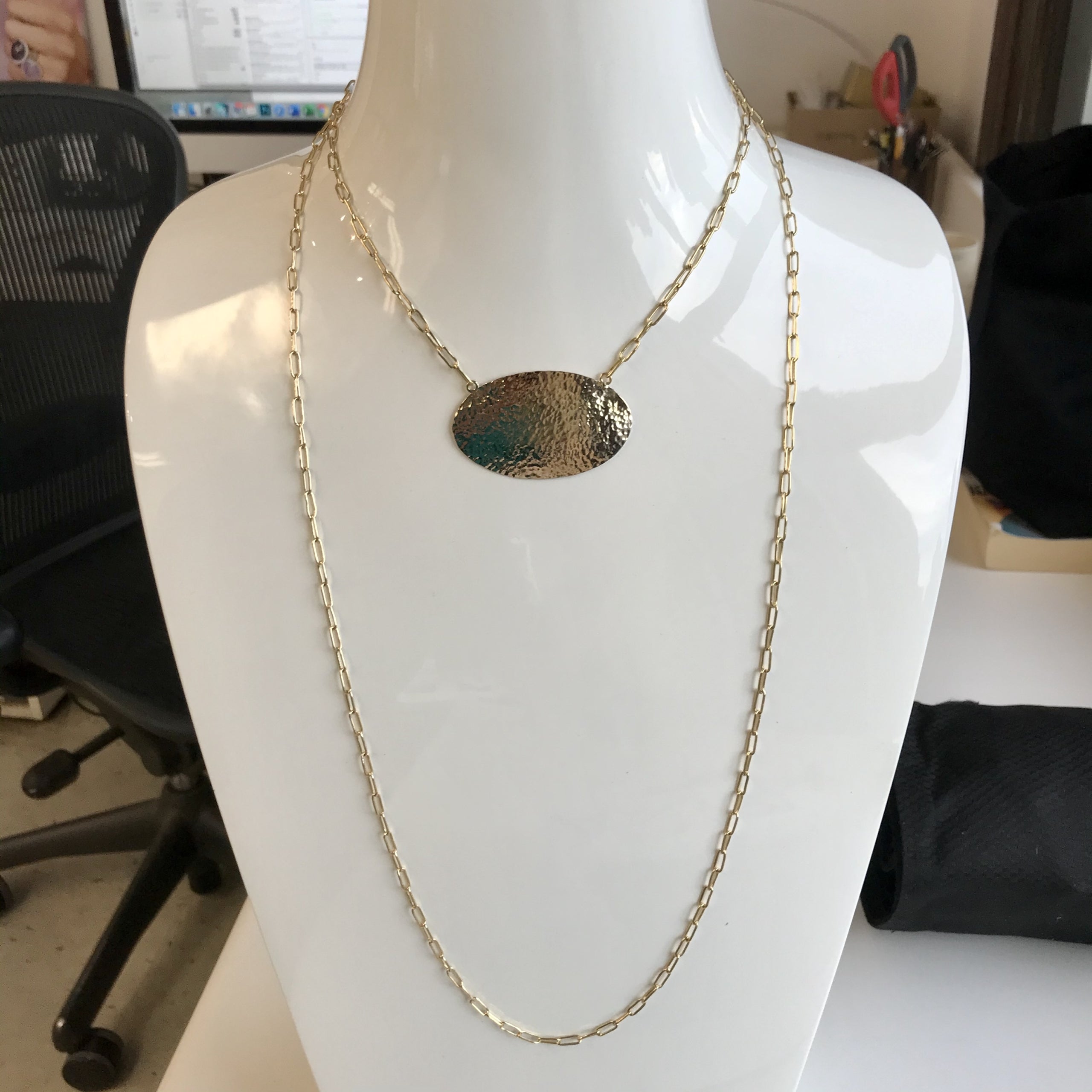 A cherished friend and longtime client had gold jewelry she was not wearing, so we melted all her gold down at the studio and hand crafted her two necklaces that are perfect worn together or separately.