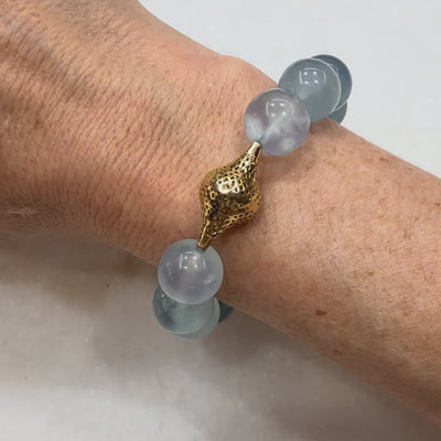 18K Yellow Gold Crownwork® Beaded Bracelet with Aquamarine