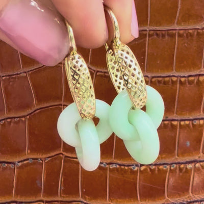 18K Yellow Gold Crownwork® Link Earrings with Interlocking Jade Drops