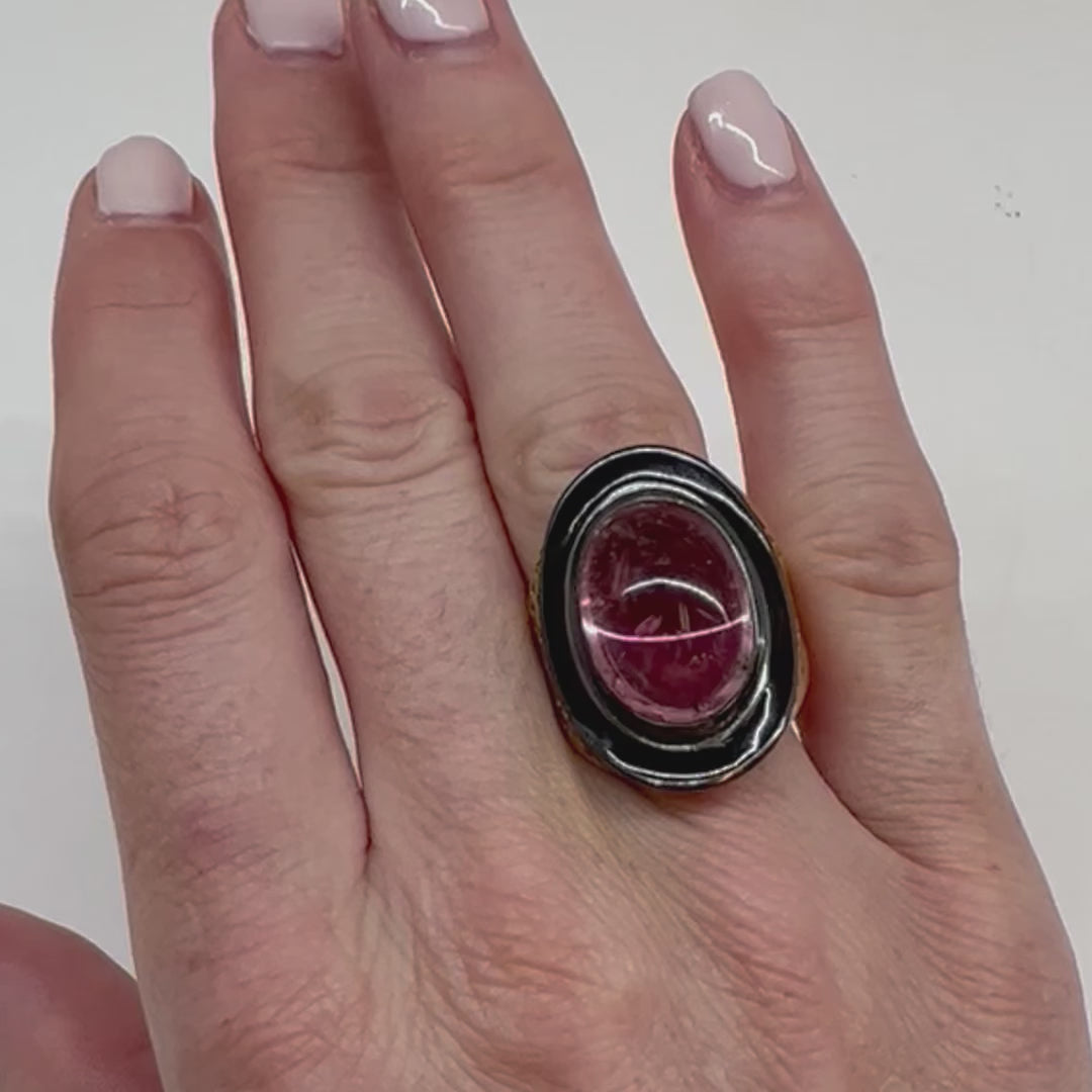 Black Enamel and Pink Tourmaline Regency Ring