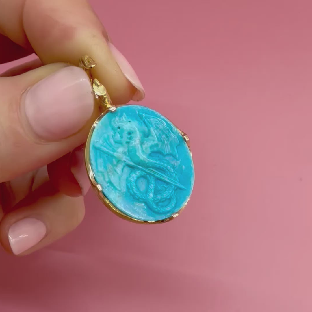 The intricate dragon carving symbolizes power, wisdom, and good fortune, making this a meaningful talisman for life's journey. In many cultures, the dragon represents transformation, protection, and the mastery of natural elements, a legendary guardian that brings strength and prosperity to its keeper. Our signature detachable bale provides versatile wearing options, allowing you to easily transfer this stunning turquoise dragon pendant between different chains, necklaces, or bracelets. This carved design serves as an enduring symbol of courage and mystical protection.