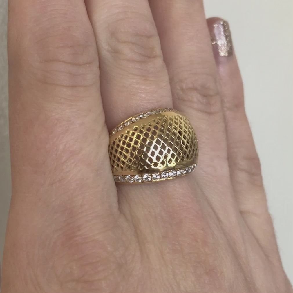 This is our take on a classic cigar band, domed and tapered to the base with our signature crownwork® to open the ring up. The final touch is diamonds paved around the edges for some added personality. This ring will become an everyday signature