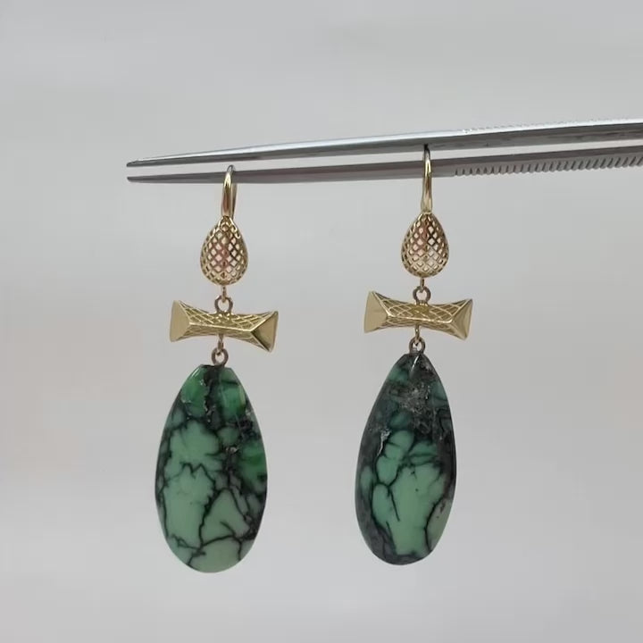 Crownwork Pear and Crossbar Variscite Drop Earrings