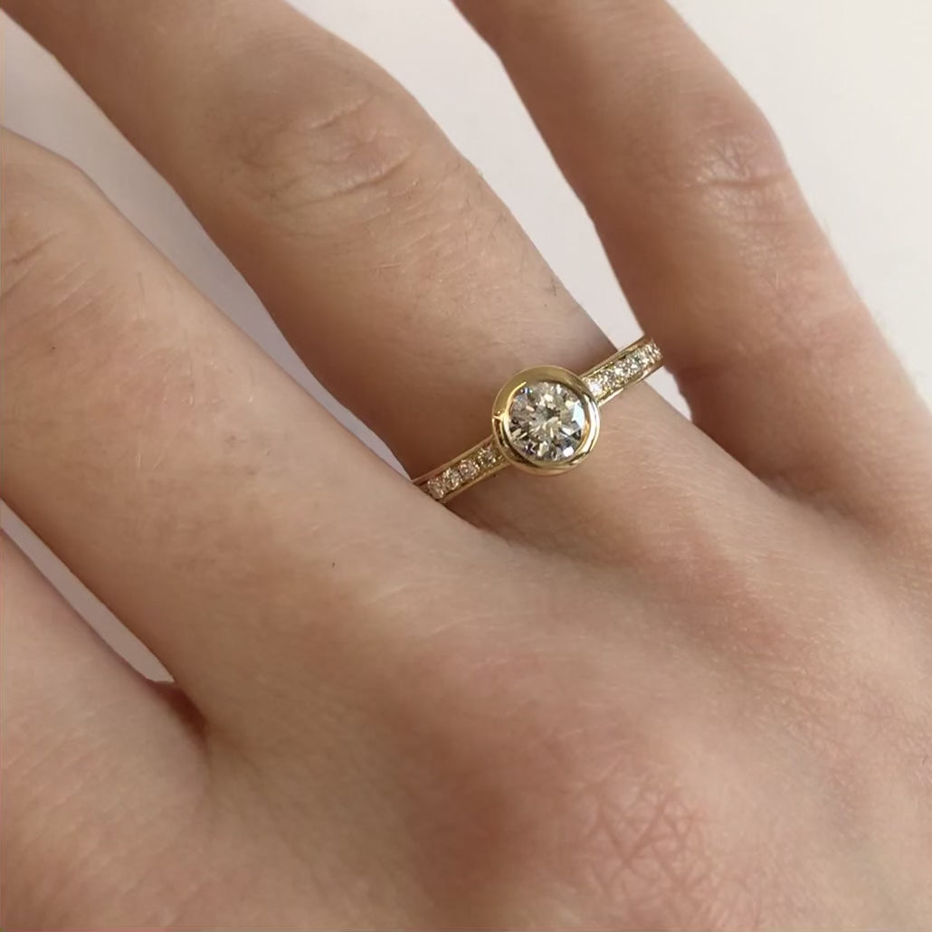 STONE TYPE/CARAT WEIGHT: Center stone Diamond 0.37 cts., shoulder diamonds 0.15 cts. 5mm