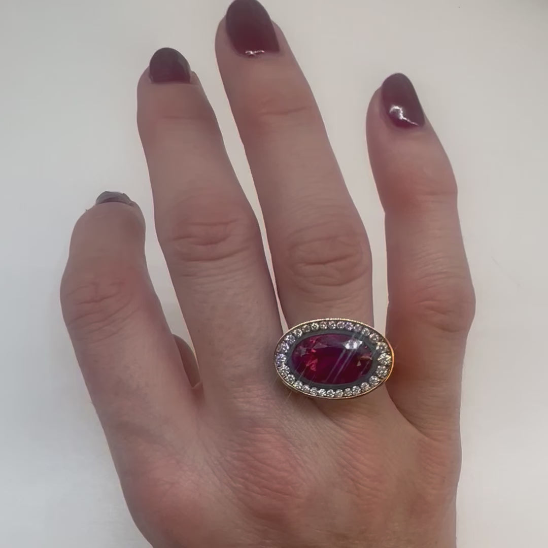East / West Oval Pink Tourmaline Ring with Graduated Pave Diamonds