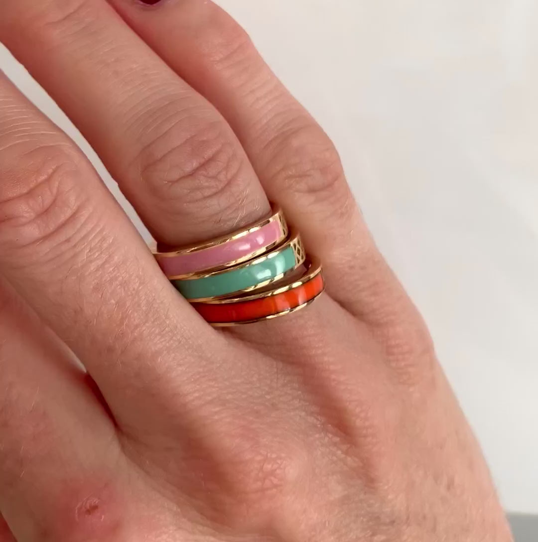 While each enamel band makes a beautiful statement on its own, they truly shine when stacked together - we always say they're better with a friend! Mix and match colors to create your own unique combination or wear multiples for bold, colorful impact. These versatile rings work beautifully as wedding bands, anniversary gifts, or everyday color statements.