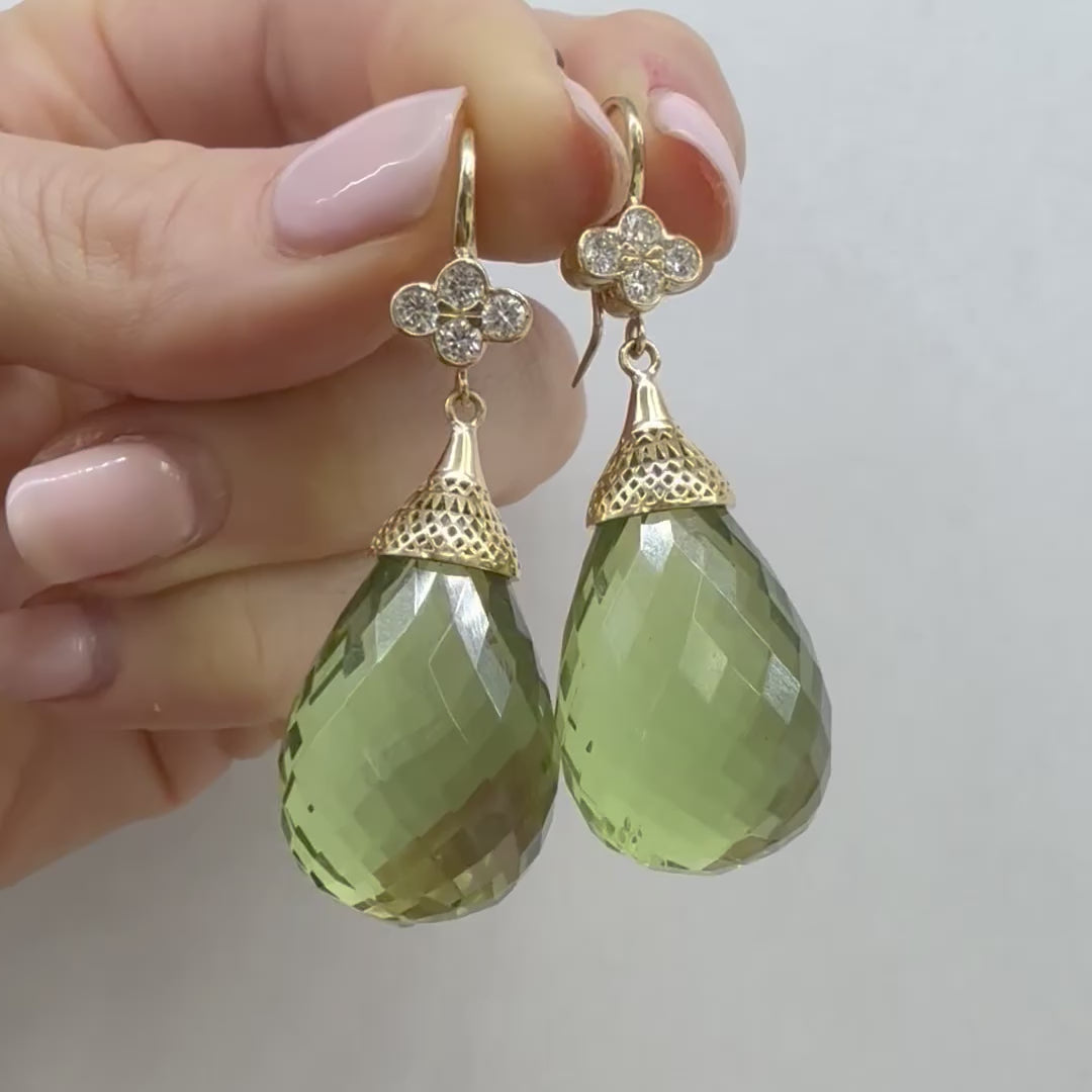 These sparkly faceted green amber drops are paired with our signature crownwork® clover earring tops set with VS 1 Lab Grown Diamonds.