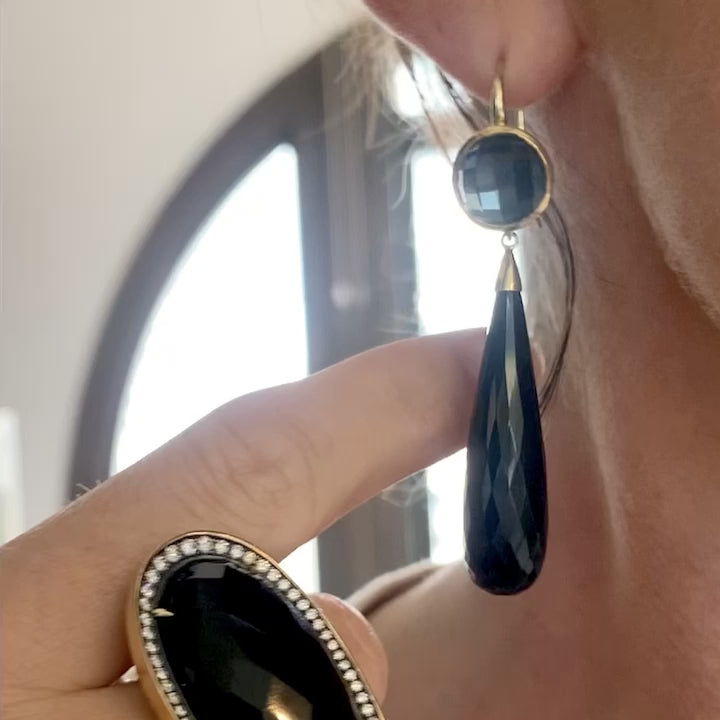 Faceted Hematite and Onyx Drop Earrings