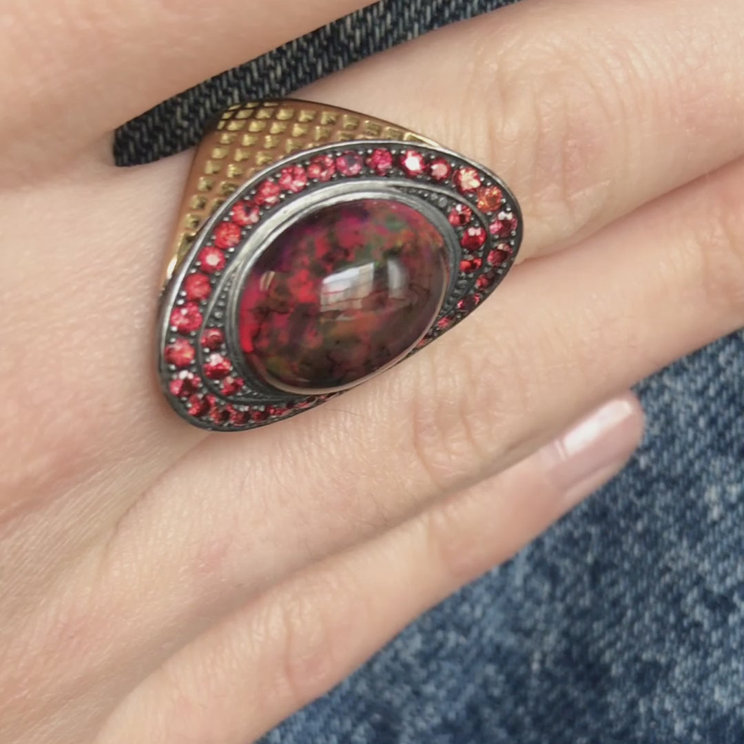 Madagascan Orange Sapphire and Black Opal Regency Ring