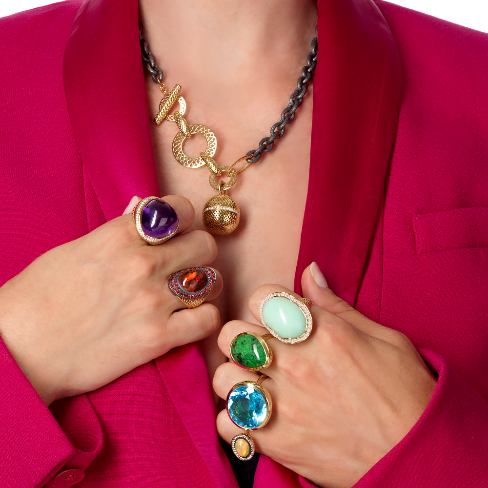 The Crownwork® design technique, trademarked by Ray Griffiths, draws inspiration from the intricate craftsmanship of classic fine jewelry design. Our distinctive Crownwork® grid-like pattern, crafted in 18-karat gold, is a signature element of our bold and airy designs. Over time, the Crownwork® aesthetic has become synonymous with Ray's designs and is recognized as a hallmark of his innovative approach to fine jewelry.
