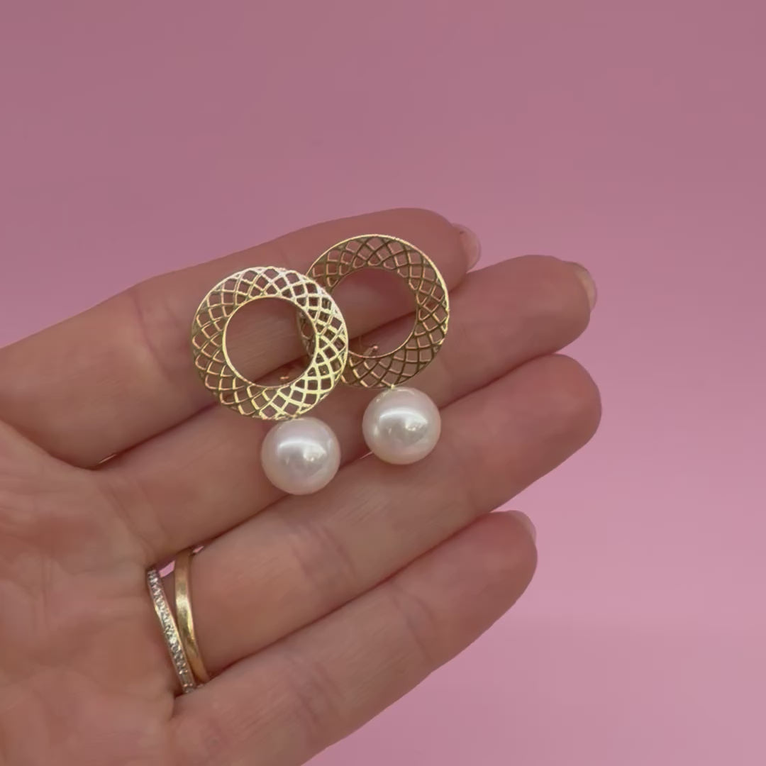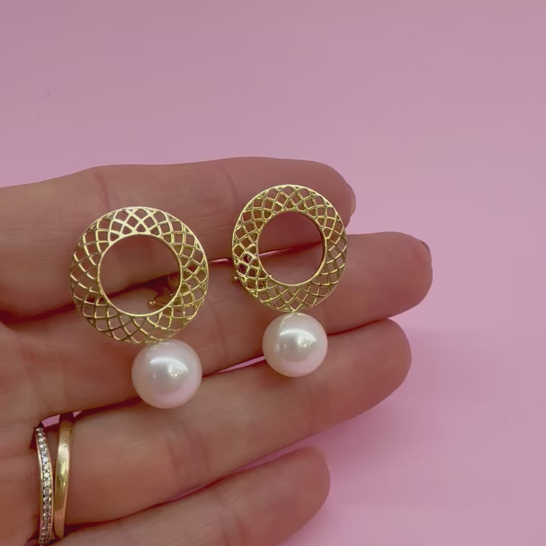 These 18k crownwork® circle clip on earrings are forward facing on the ear to show off the gold work and are crafted for comfort and durability. Hanging below is a cultured pearl, a gorgeous match exuding sophistication. Perfect as an everyday earring or with your favorite cocktail dress. Small pearls, big statement!
