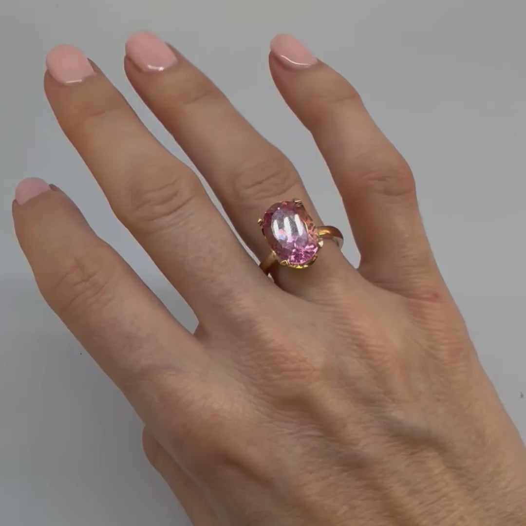 Lightweight yet luxurious, this ring is a statement piece you’ll reach for every day. Whether you’re dressing up or keeping it casual, its vibrant pink hue and radiant gold finish add a touch of glamour to any look. A must-have for your jewelry collection
