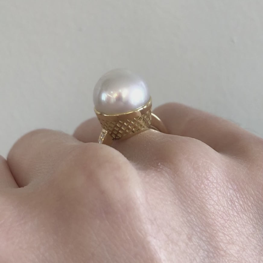 This classic crownwork® ring features a crisp bezel setting and open translucent feel allowing full appreciation of the gorgeous south sea pearl. Diamond shoulders add a little extra to this beauty, the perfect diamond and pearl combo